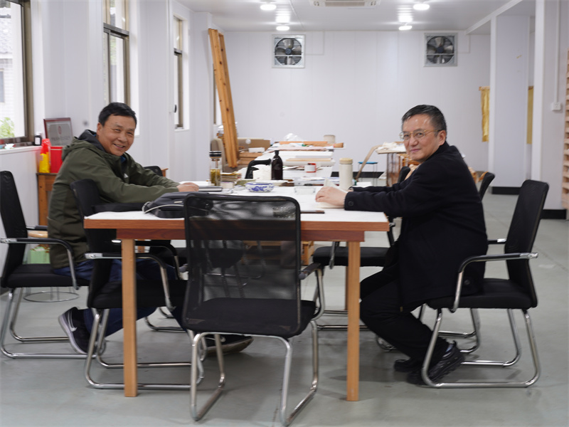 2021.4.14 中國科技大學(xué)人文與社會(huì)科學(xué)學(xué)院院長湯書昆來公司指導(dǎo)楮紙古法制作技藝。